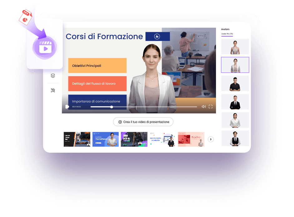 Guarda il nostro tutorial video per imparare come convertire la tua presentazione PowerPoint in video in modo semplice.